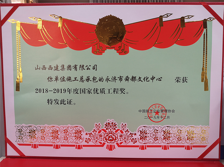 12月8日,2018-2019年度國家優質工程獎總結表彰大會在北京國家會議中心隆重召開,由西建集團公司承建的永濟市舜都文化中心項目獲“國家優質工程獎”,成為運城市首個榮獲國家優質獎的房屋建筑類工程,標志著西建公司高質量發展取得了階段性突破。國家優質工程獎設立于1981年,是我國工程建設質量方面設立最早、規格最高,跨行業、跨專業的國家級榮譽獎勵。