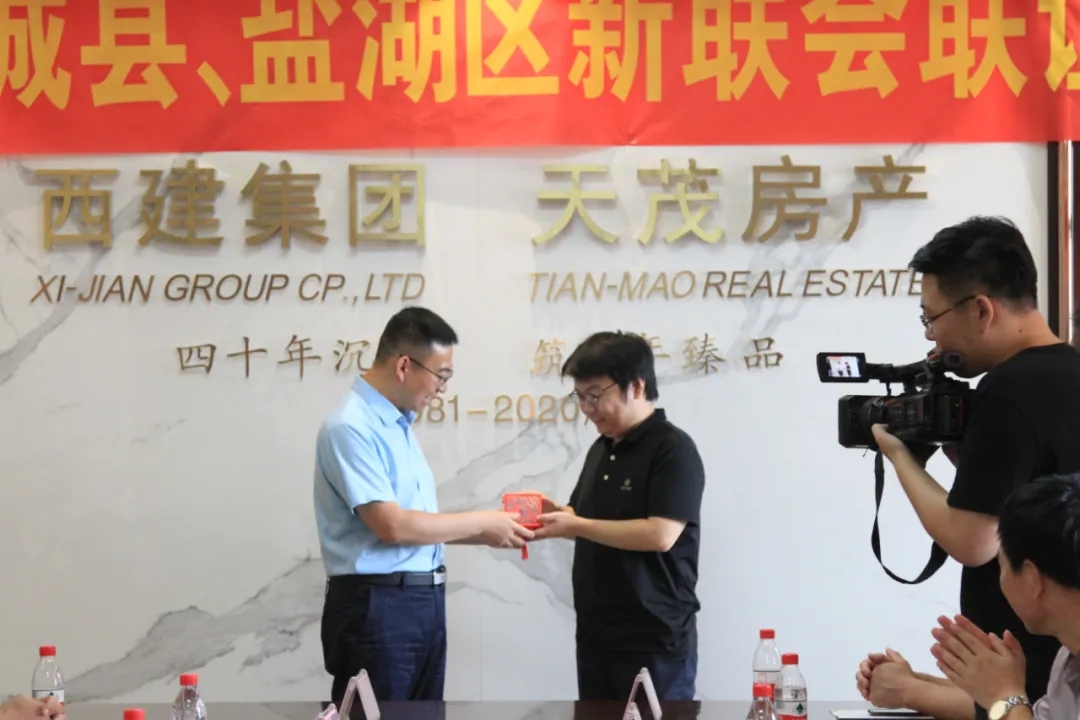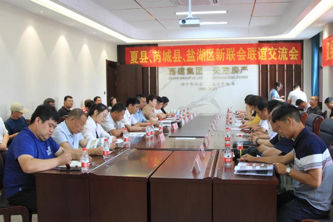 7月24日,夏縣縣委常委、統(tǒng)戰(zhàn)部長(zhǎng)閆小娟,統(tǒng)戰(zhàn)部常務(wù)副部長(zhǎng)文志標(biāo),夏縣新聯(lián)會(huì)會(huì)長(zhǎng)衛(wèi)毅驍,帶領(lǐng)夏縣縣委統(tǒng)戰(zhàn)部成員、夏縣新聯(lián)會(huì)成員,到西建集團(tuán)進(jìn)行參觀,并與芮城縣、鹽湖區(qū)新聯(lián)會(huì)在西建·天茂上郡展示中心會(huì)議室開展聯(lián)誼座談會(huì),鹽湖區(qū)委常委、統(tǒng)戰(zhàn)部長(zhǎng)李俊龍、鹽湖區(qū)新聯(lián)會(huì)會(huì)長(zhǎng)衛(wèi)華出席。芮城縣新聯(lián)會(huì)會(huì)長(zhǎng)、西建集團(tuán)天茂房產(chǎn)總經(jīng)理劉忠森接待陪同。