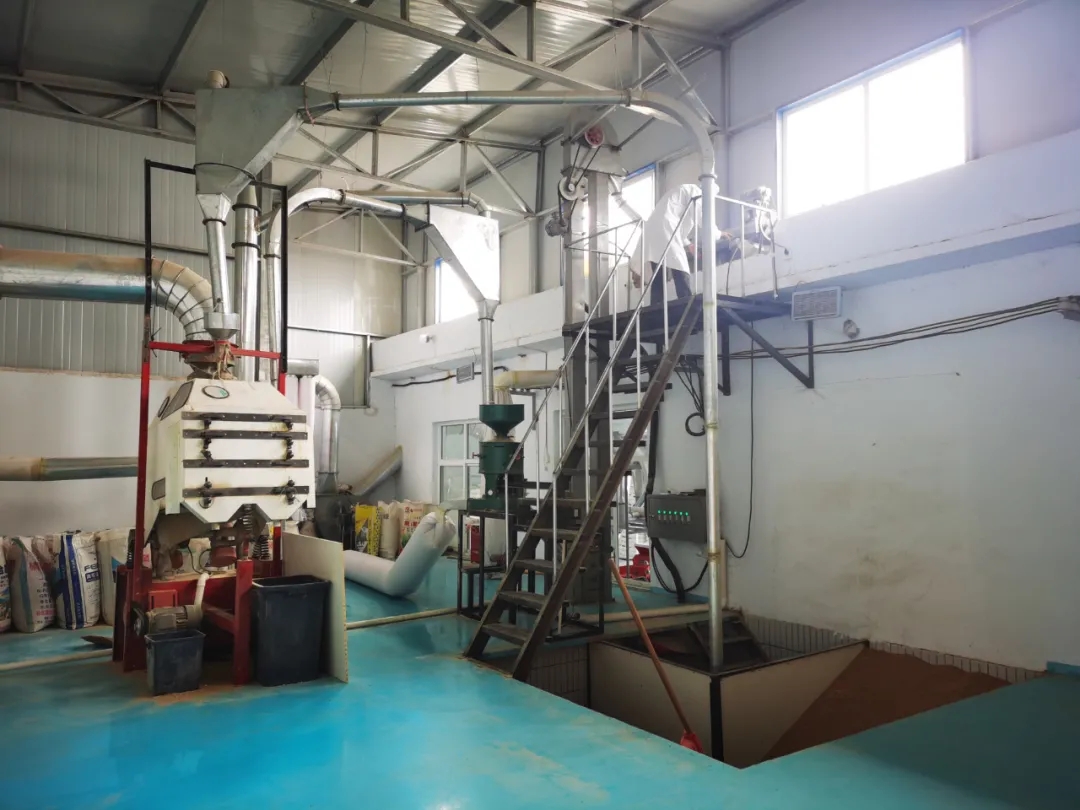 在駐村第一書記王靜的帶領下,西建集團天茂房產工作人員參觀了面粉廠的生產間,并深入了解了毛家山面粉的制作工藝及流程。