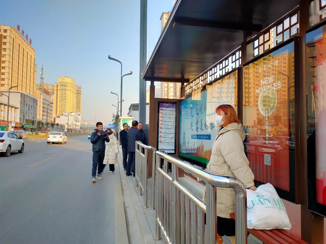 市人大常委會主任安雅文現場視察,劉忠森代表提出的《關于規范公交站牌公交站臺建設的建議》重點建議辦理情況。