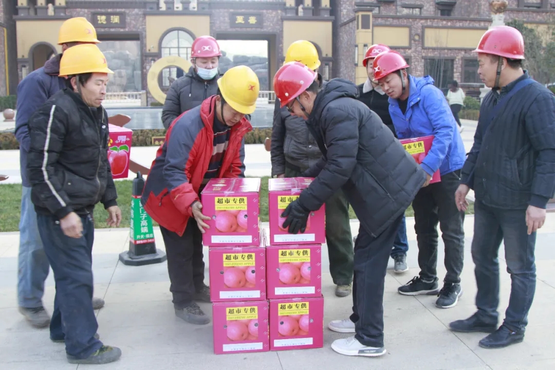 天茂房產(chǎn)分公司總經(jīng)理劉忠森接過村干部帶來的柿餅,拆了一袋,分給現(xiàn)場的員工們,高興的說:“這是我們家鄉(xiāng)的柿餅,大家都應(yīng)該嘗一嘗。”他說“非常感謝朱陽村干部們對西建集團(tuán)的認(rèn)可,帶來家鄉(xiāng)的蘋果和柿餅慰問咱們的農(nóng)民工兄弟,讓大家伙心里很暖,寒冬不再冷!”