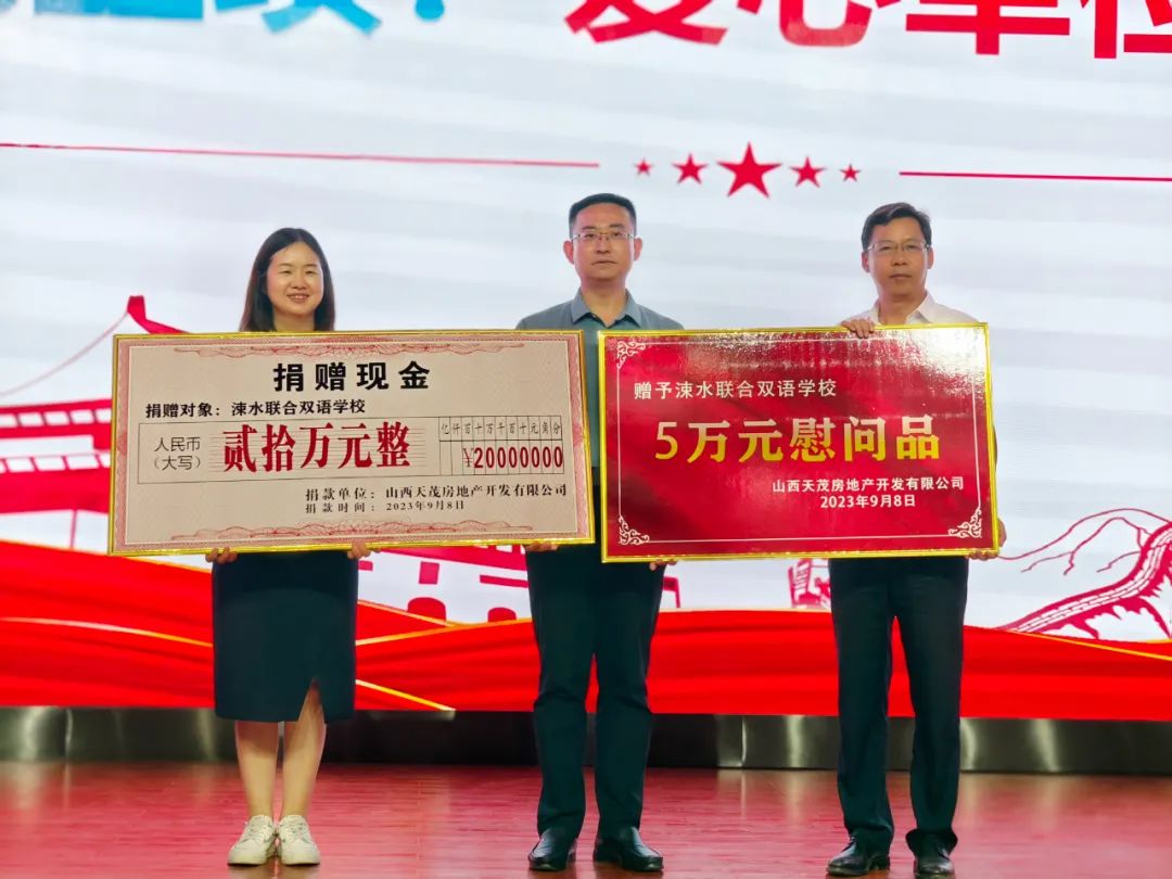西建·天茂房產(chǎn)為涑水聯(lián)合雙語學(xué)校捐款捐物達(dá)25萬元