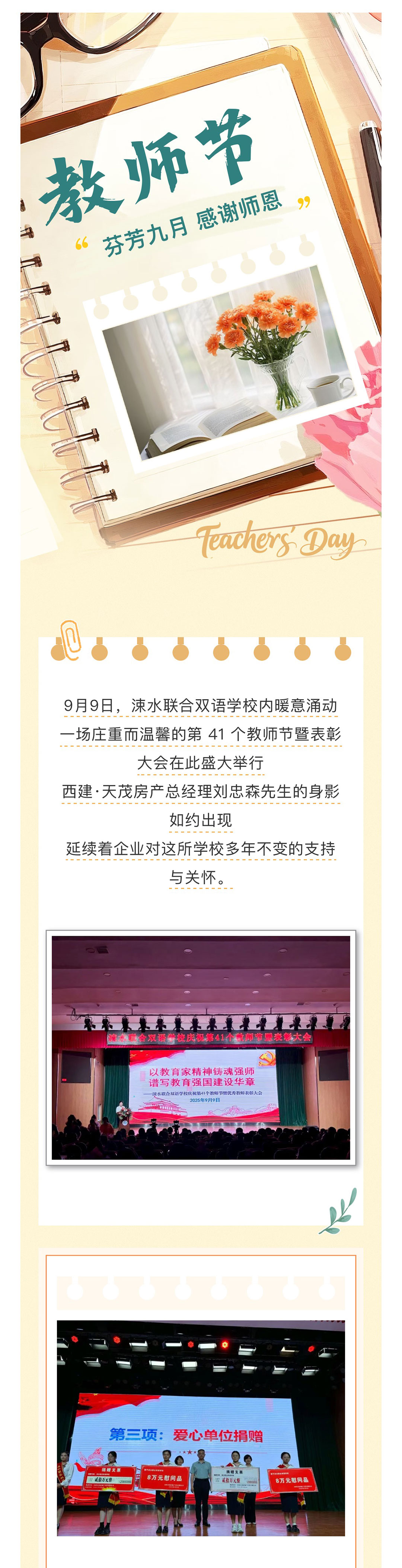 情系教育 筑夢未來 | 西建·天茂房產劉忠森總經理受邀出席涑水教育集團第 41個教師節慶典