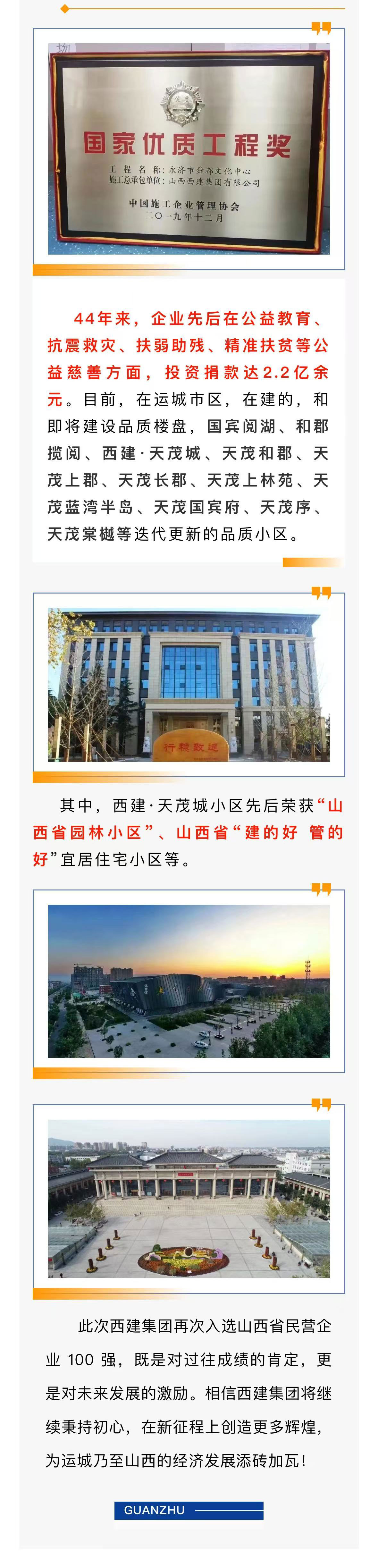 喜報!西建集團再次榮登“ 2025 年山西省民營企業 100 強”